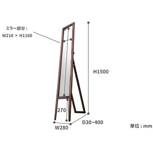 軽量化を重ねた約4㎏の、とってもスリムで軽いスタンドミラーです。