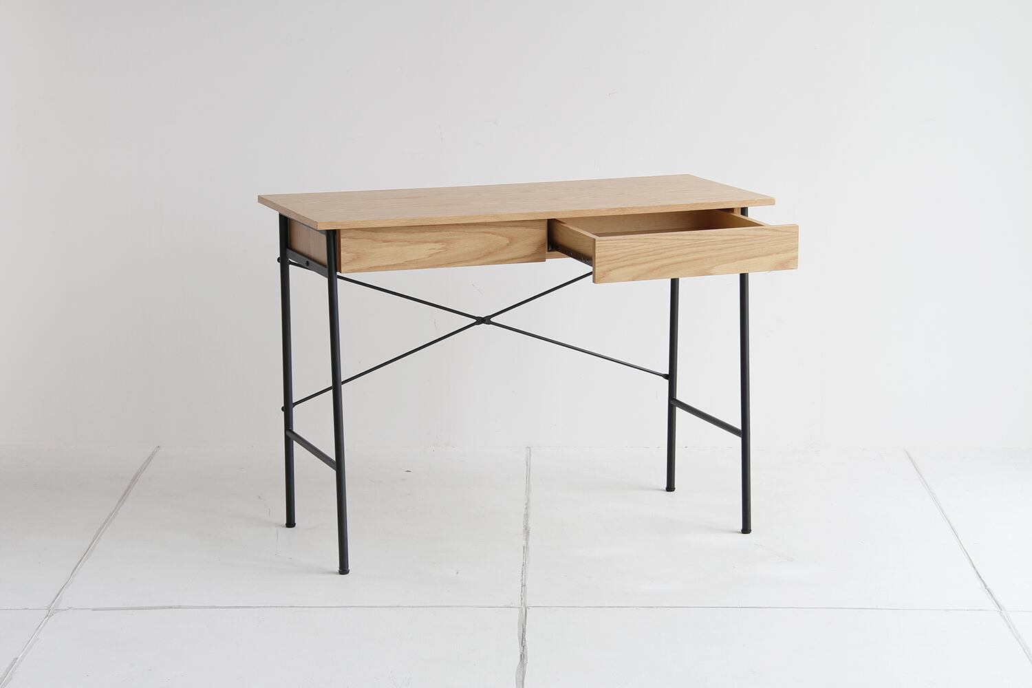 【二色展開】幅100cm。二つの引き出しが嬉しい、木とスチールのコンパクトデスク。