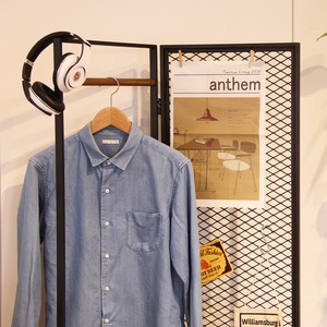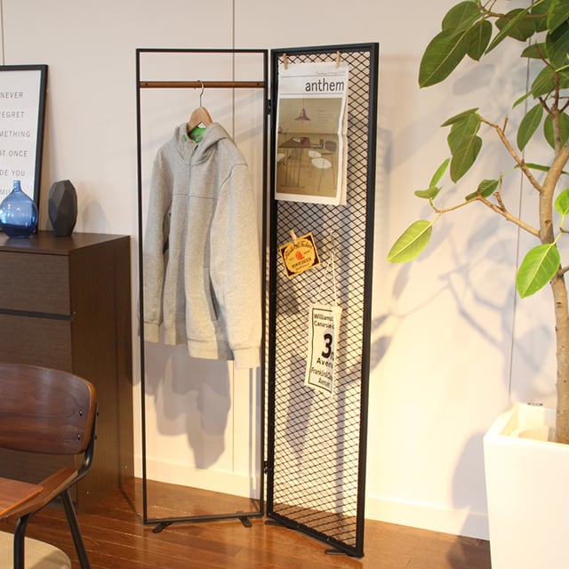パーテーション型アイアンハンガーラック。カフェ風男前スクリーンで見せる収納。