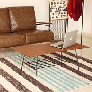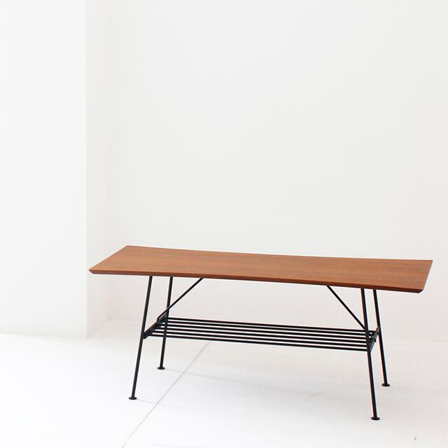 砂時計のような天板の形がユニークな、収納棚付きセンターテーブル。