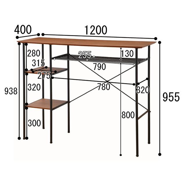 幅1200×奥行400×高さ955mm(120×40cm)