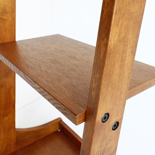 ラダーラックには引っかける収納をするハンガーラックタイプと、置く収納用の飾り棚タイプがありますが、この木製ラダーラックは飾り棚タイプ。