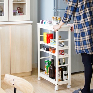 キャスター付で移動が楽々な天然木製の4段キッチンワゴン。