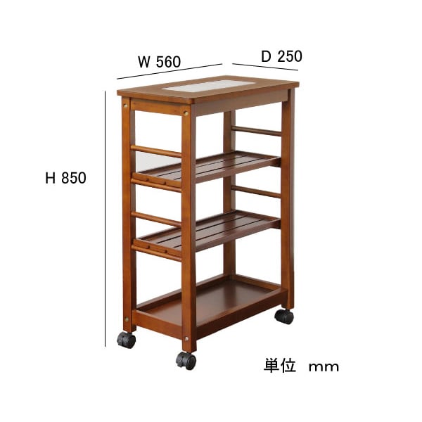 スリムな4段キッチンワゴン。天然木製で綺麗なブラウンとホワイトの二色展開です。