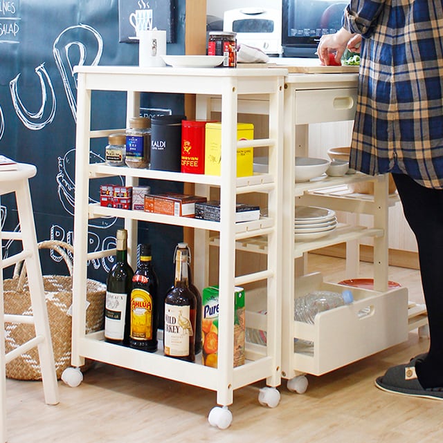 天然木の温かみを感じるキッチンワゴンをご紹介します。